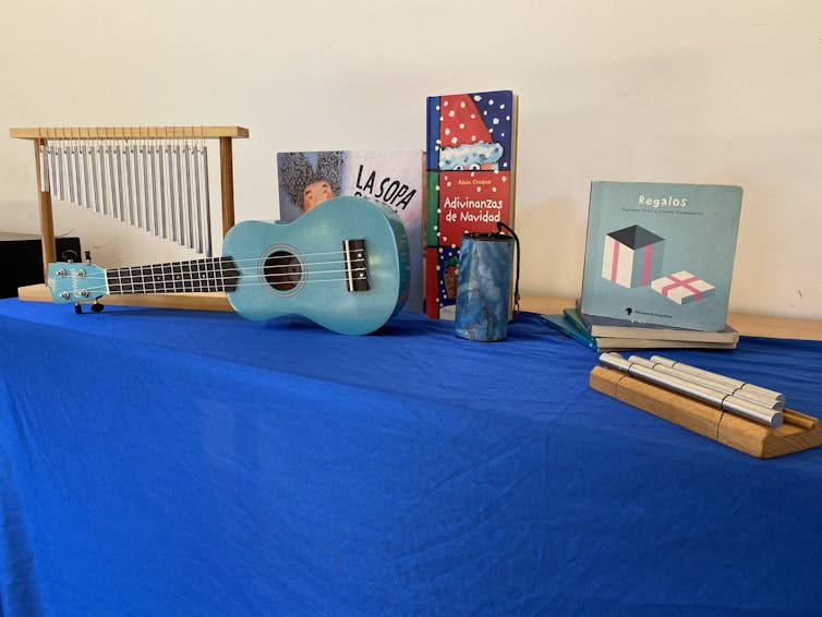 Podemos aprovechar instrumentos musicales que tengamos en casa y utilizarlos para apoyar la narración. Mediante las posibilidades melódicas que nos ofrecen determinados instrumentos o la voz cantada podemos crear una breve melodía que represente, por ejemplo, el carácter de un personaje.