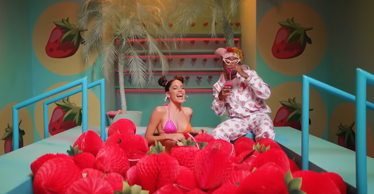Por ejemplo, en algunas de las escenas de Fresa, aunque canta, Martina Stoessel (Tini) es un cuadro al fondo de una habitación. En Swing, una mujer ataviada con un sugerente vestido con transparencias nada sin rumbo alrededor del cantante.